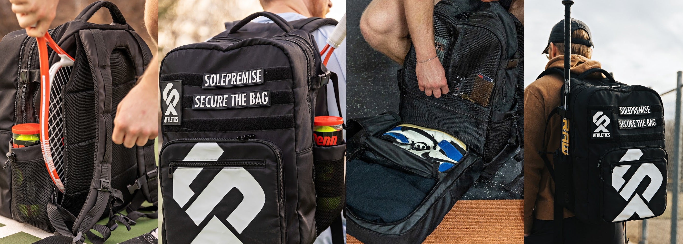 Not limited to just sports equipment, Sole Premise's Gym Tactical Backpack can comfortably carry 3-4 pairs of shoes, a Basketball, Tennis Raquet, Yoga Mat, Baseball Bat or just the valuables such as wallet and phone.