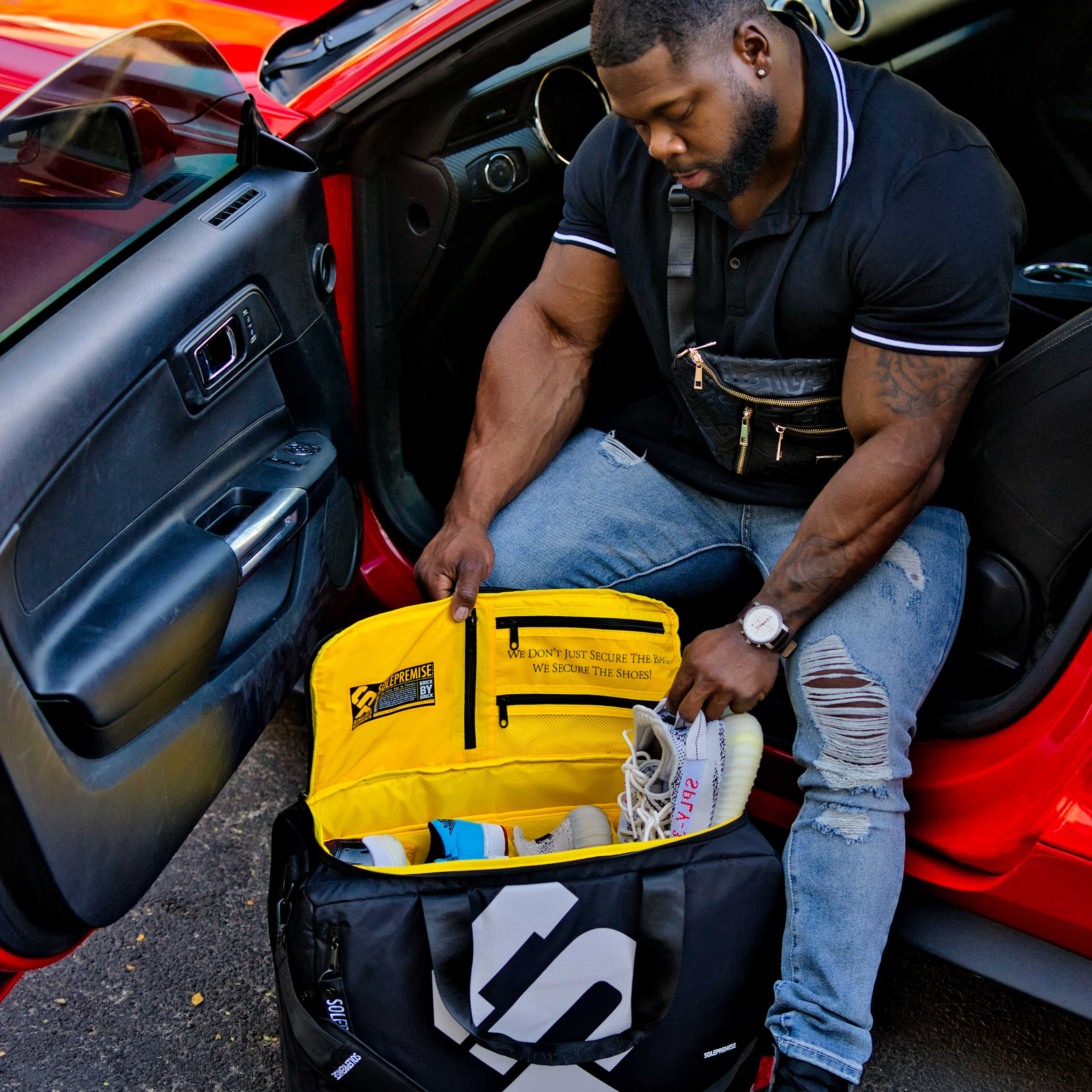 Our Luxury Duffle bag line can hold up to 4 pairs of shoes as well as space for clothes, shoes, toiletries and more!