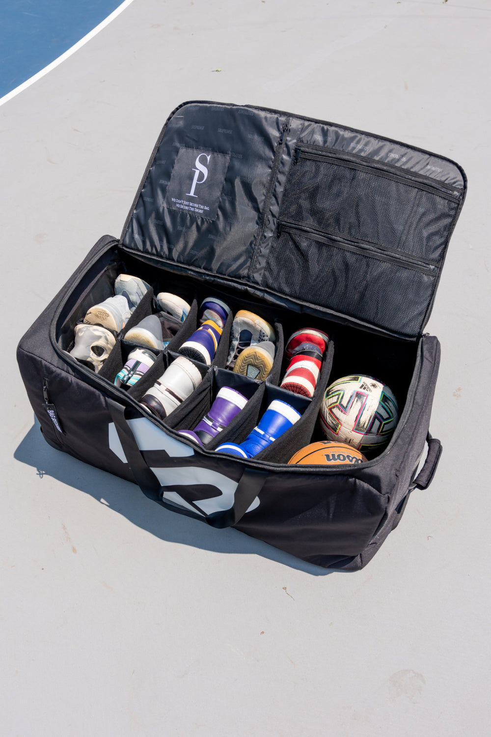 Most football bags are subjected to rigorous handling, frequent travel, and varying weather conditions. Hence, durability is a crucial factor to consider. High-quality materials like reinforced nylon or polyester ensure longevity and resistance to wear and tear. Our Ultimate Equipment Carrier with Wheels is designed with sturdy zippers, reinforced stitching, robust handles and heavy duty wheels for easy travel providing that peace of mind knowing your bag can withstand the demands of all kinds of football equipment.