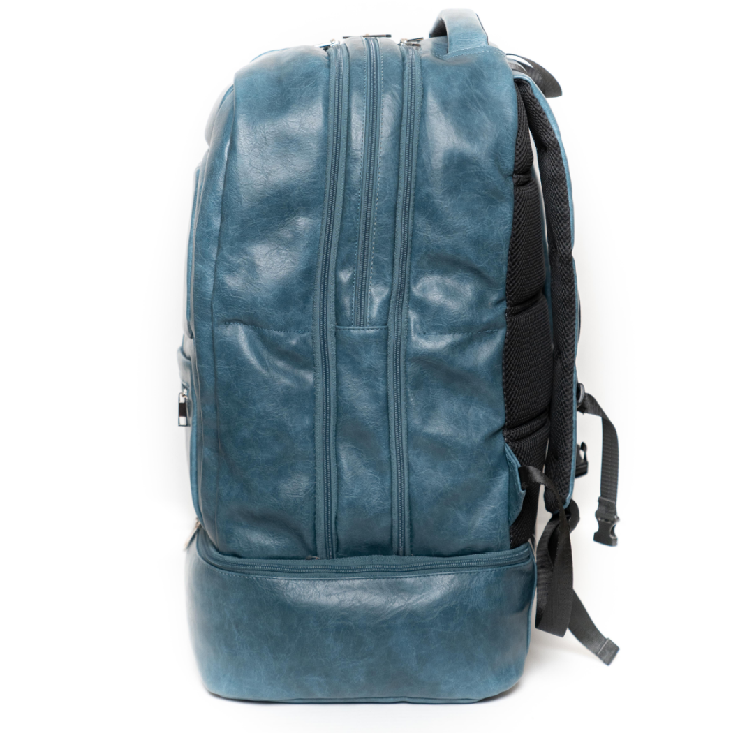 The Blue Leather Luxury Carry-On Backpack is the latest in our travel bag collection and has taken the world by storm by carrying up to 5 pairs of shoes, clothes, laptops, travel essentials, and much more! The best part of it all, our bags fit neatly in the overhead bin of commercial airlines.