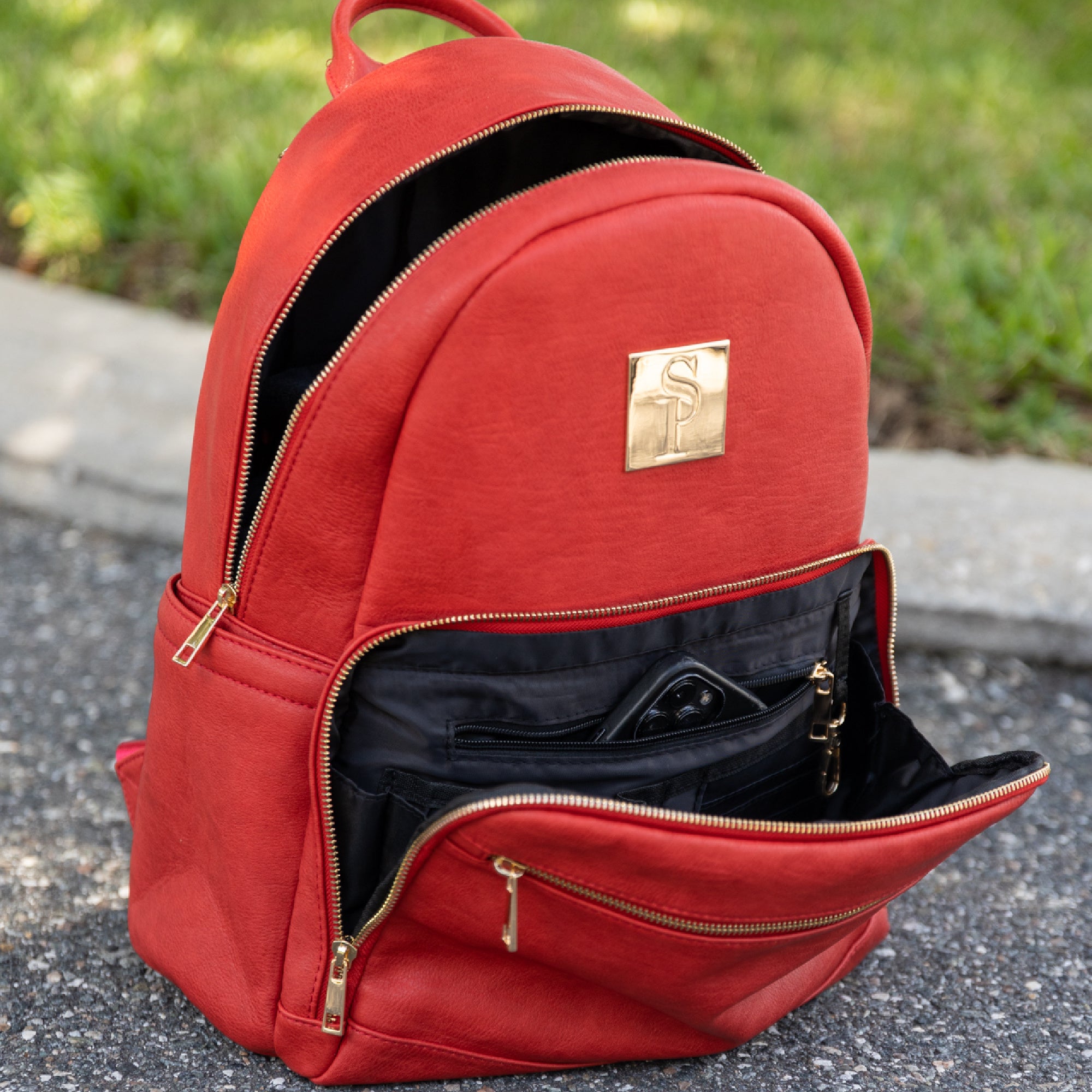 Red Leather Carrier Backpack