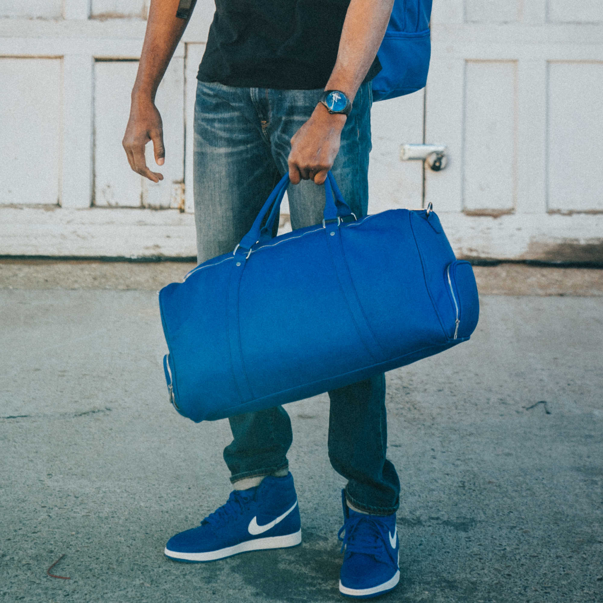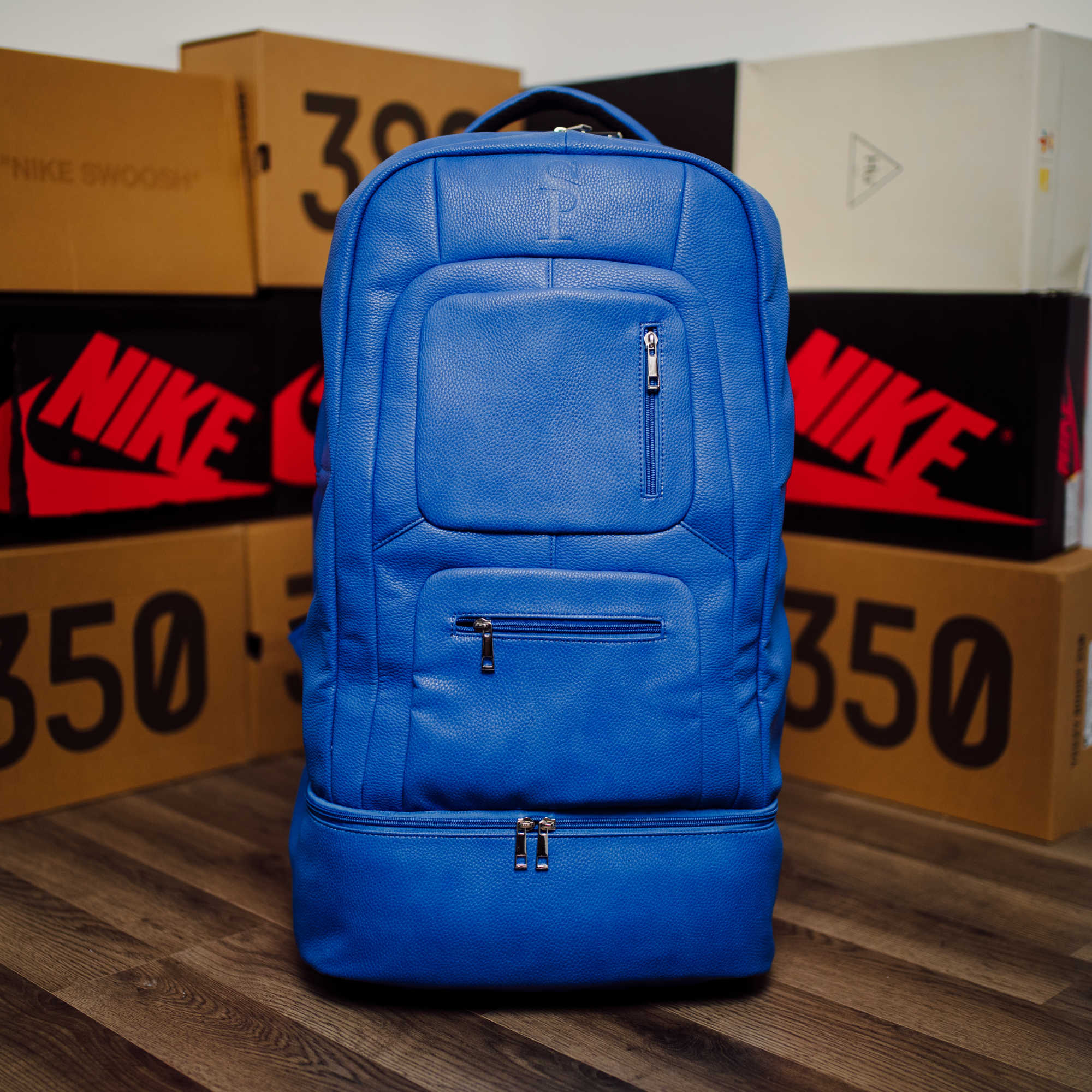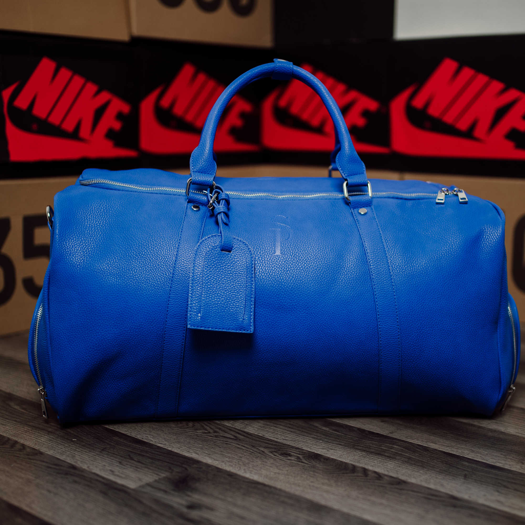 Royal Blue Leather Signature Bag Set (Carry-on Travel Backpack & Duffle Bag)