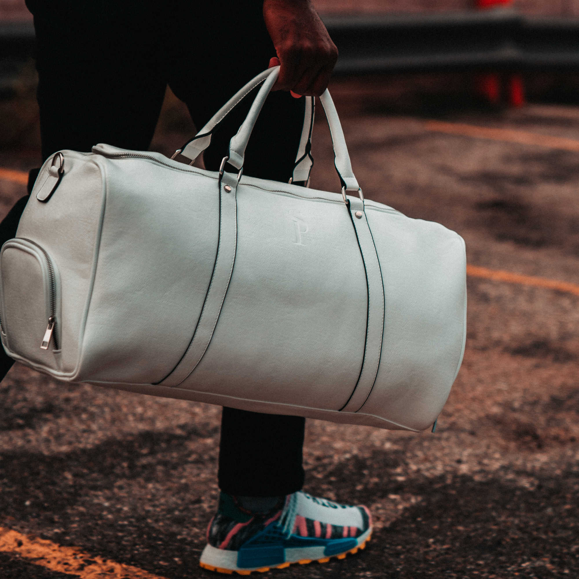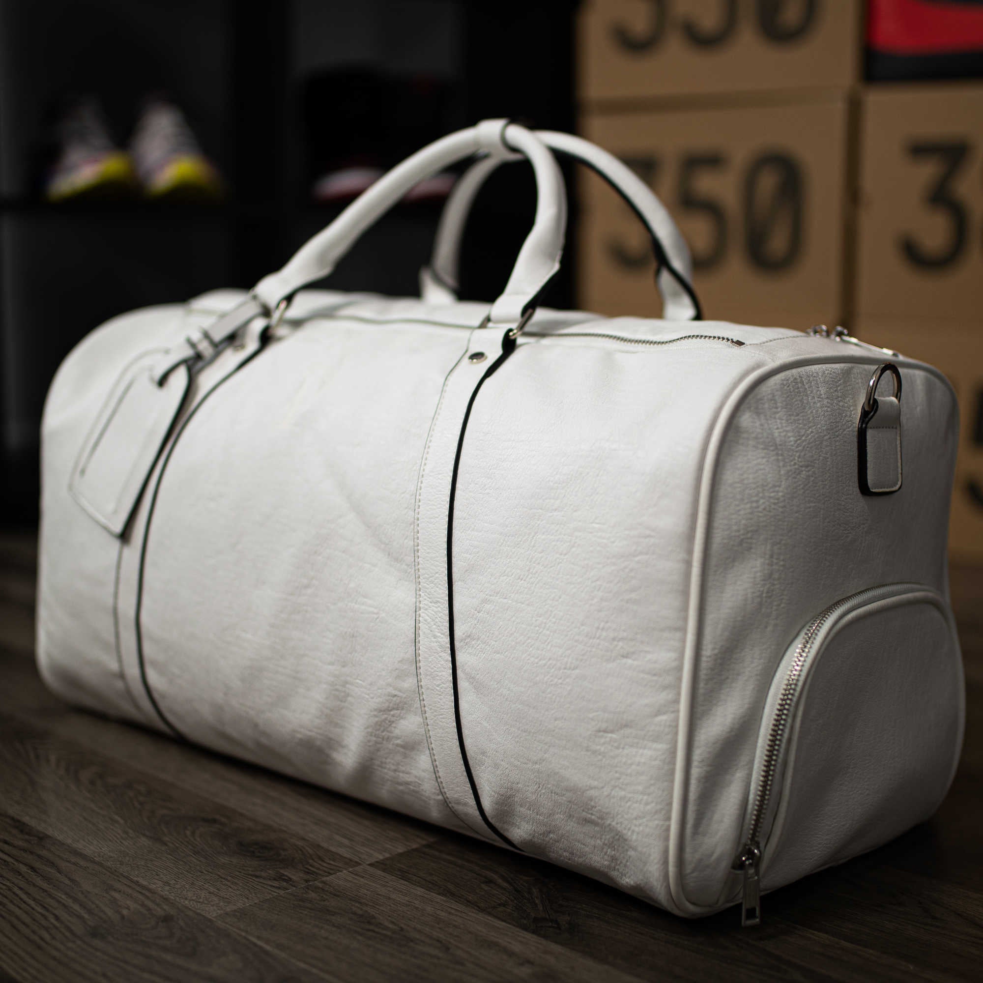 -White Tumbled Leather Duffle Bag